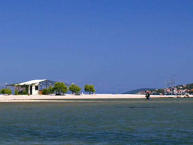 The beautiful beach is located 1.5 km from the town of Trogir, the estuary Pantano. It is 500 yards long pebble and sand beach with pine trees on the eastern side for a nice shade.